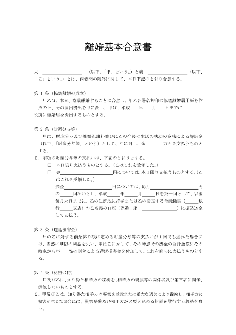 無料 離婚合意書のひな形と書き方のコツ 民法改正対応済の無料の雛形 Knowhows ノウハウズ