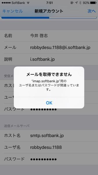 Imap Softbank Jp用のユーザー名またはパスワードが間違ってるって Yahoo 知恵袋